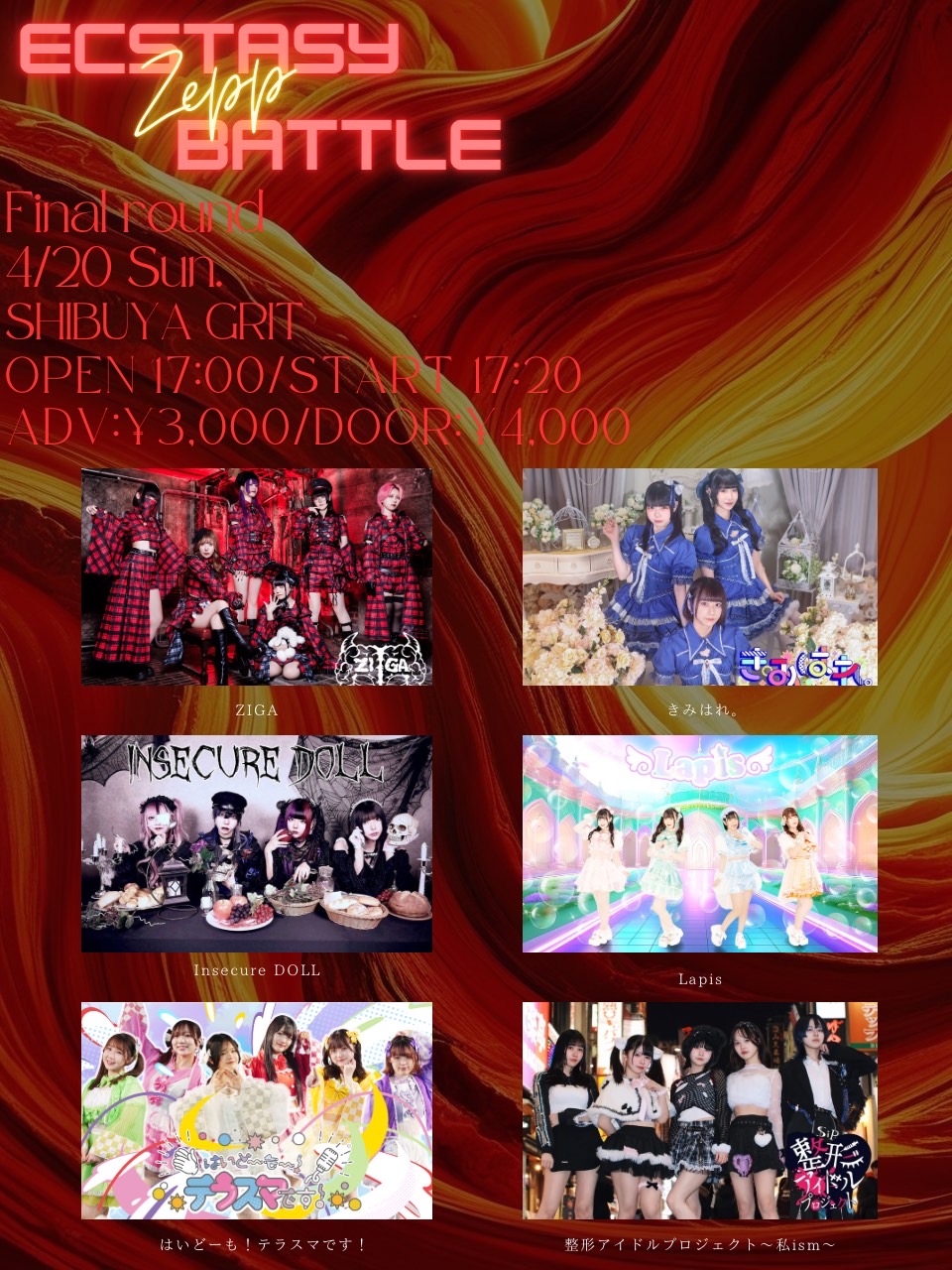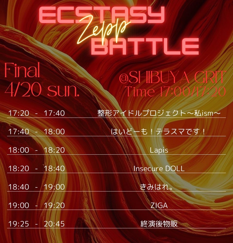 出演者 ZIGA きみはれ。 Insecure DOLL Lapis はいどーも!テラスマです! 整形アイドルプロジェクト〜私ism〜 OPEN 17:00 / START 17:20 ADV ¥3,000 / DOOR ¥4,000(+1drinkcharge¥600)