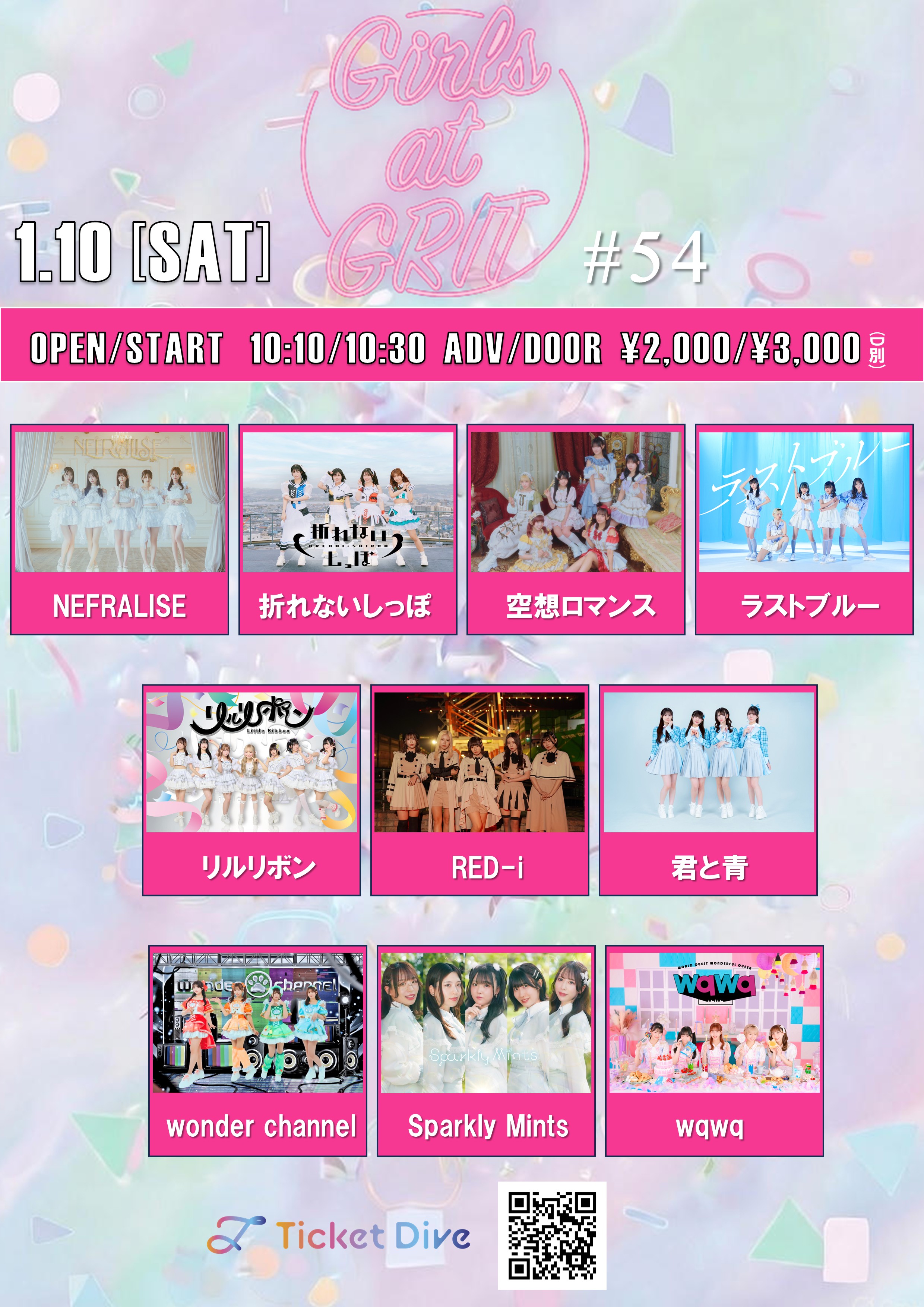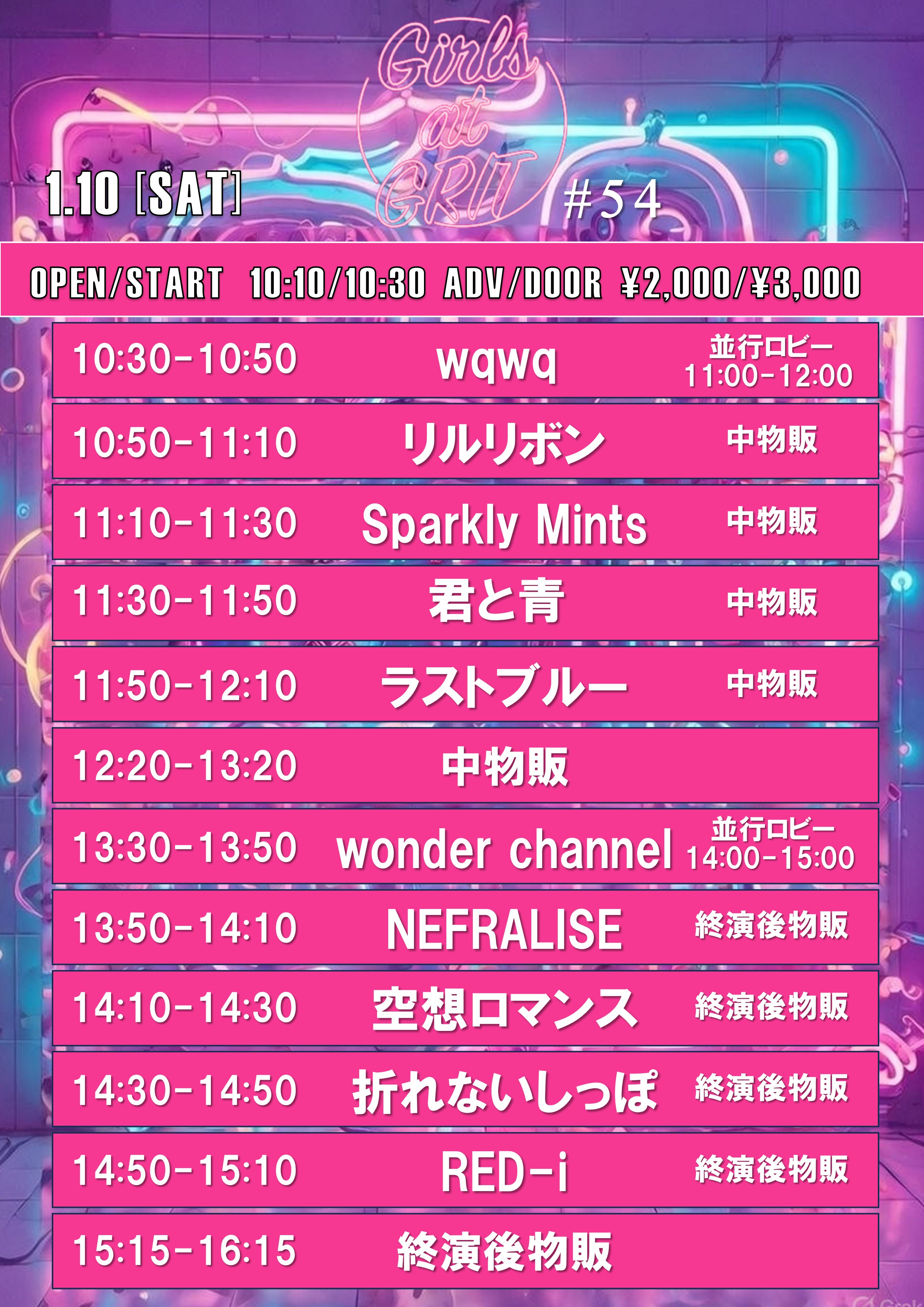 出演者 ラストブルー wqwq 空想ロマンス リルリボン 君と青 wonder channel 折れないしっぽ NEFRALISE Sparkly Mints RED-i OPEN 10:10 / START 10:30 ADV/DOOR ¥2,000/¥3,000(+1drinkcharge¥600) アイドル